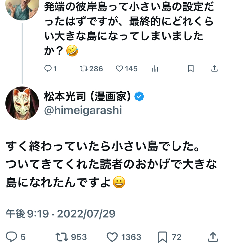 | … | 63無念Nameとしあき26/03/10(火)11:40:47No.1392879453そうだねx4彼岸島の作者は下品で頭のおかしい人をイメージしてたから実際はまともな人で逆にショックだった |
