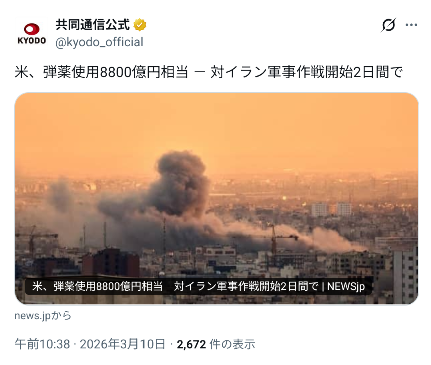 | … | 233無念Nameとしあき26/03/10(火)12:18:43No.1392885925+戦略的成果は何も得られずミサイル防衛の限界を晒し中東の米軍基地を失う |
