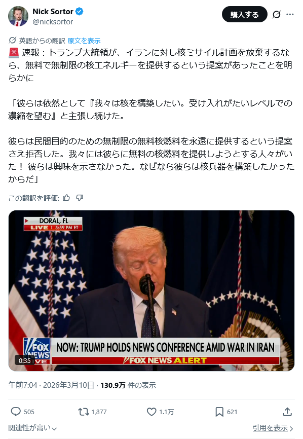 | … | 26無念Nameとしあき26/03/10(火)11:07:46No.1392874890そうだねx2これがトランプが認めたソースなの? |