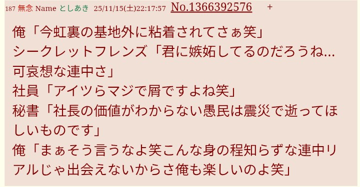 | … | 8無念Nameとしあき26/03/10(火)17:23:47No.1392934950そうだねx2>しゃちょーに幸せな未来がありますように🍀 |