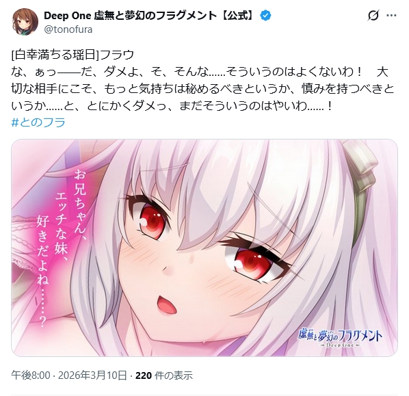 Deep One 虚無と夢幻のフラグメント略してとのフラスレ兼犬小屋削除された記事が1件あります.見る