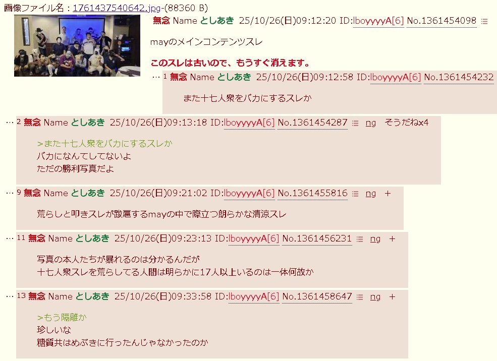 | … | 116無念Nameとしあき26/03/10(火)23:21:26No.1393022134+>17人衆はイジメ問題には詳しそう |