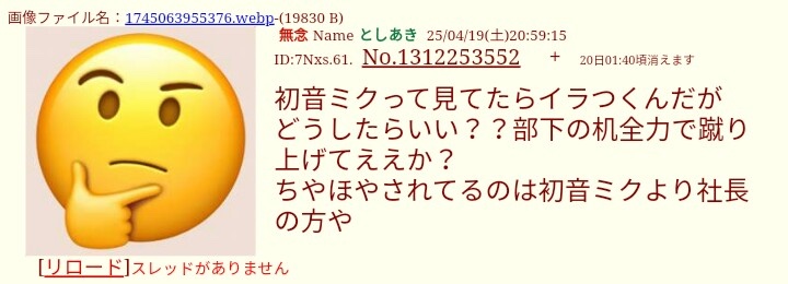 | … | 57無念Nameとしあき26/03/10(火)23:00:46No.1393017901+>偽社長だからミクより下やろ |