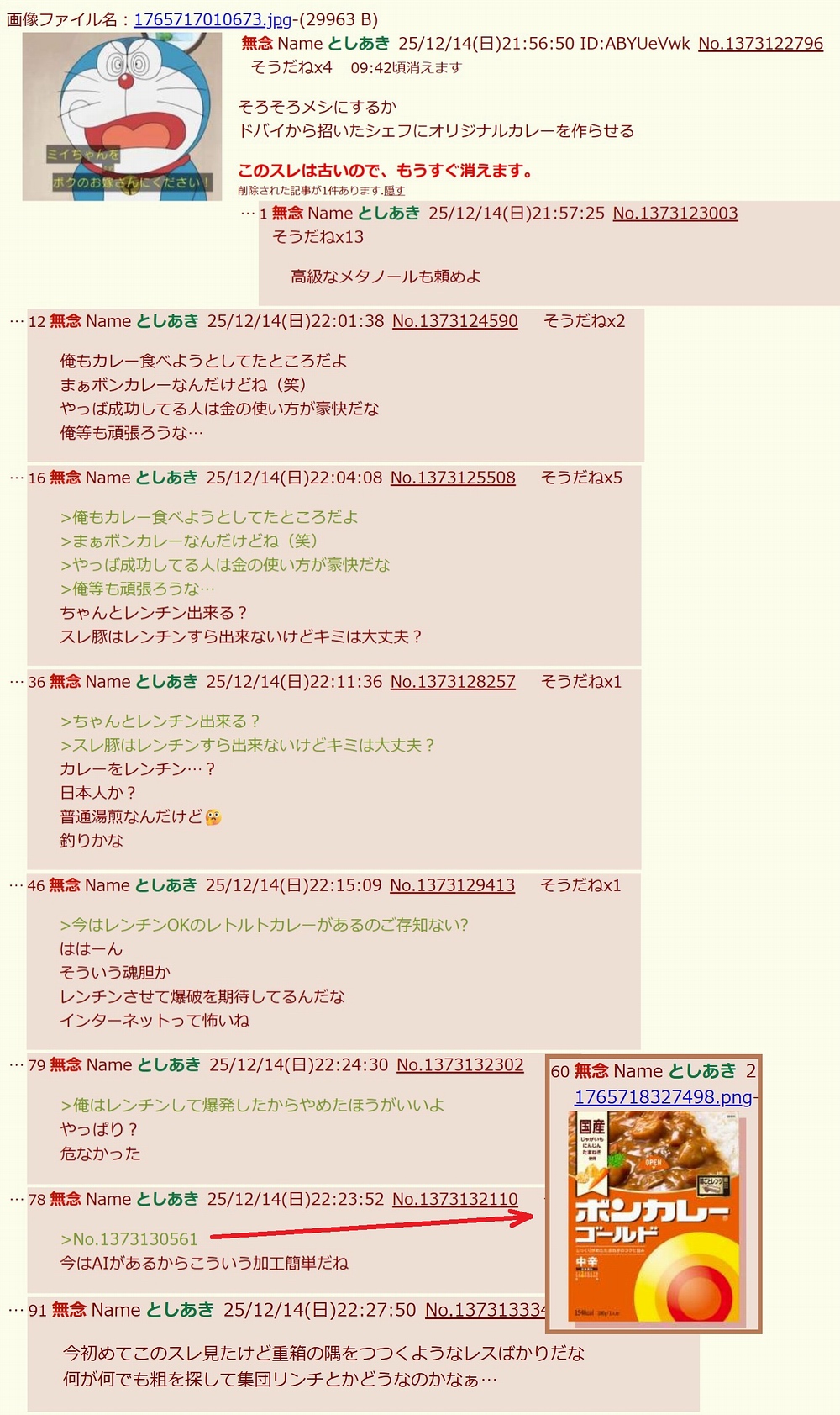 | … | 288無念Nameとしあき26/03/10(火)23:59:36No.1393029319+今度はレトルトカレーについて書くといいよ |