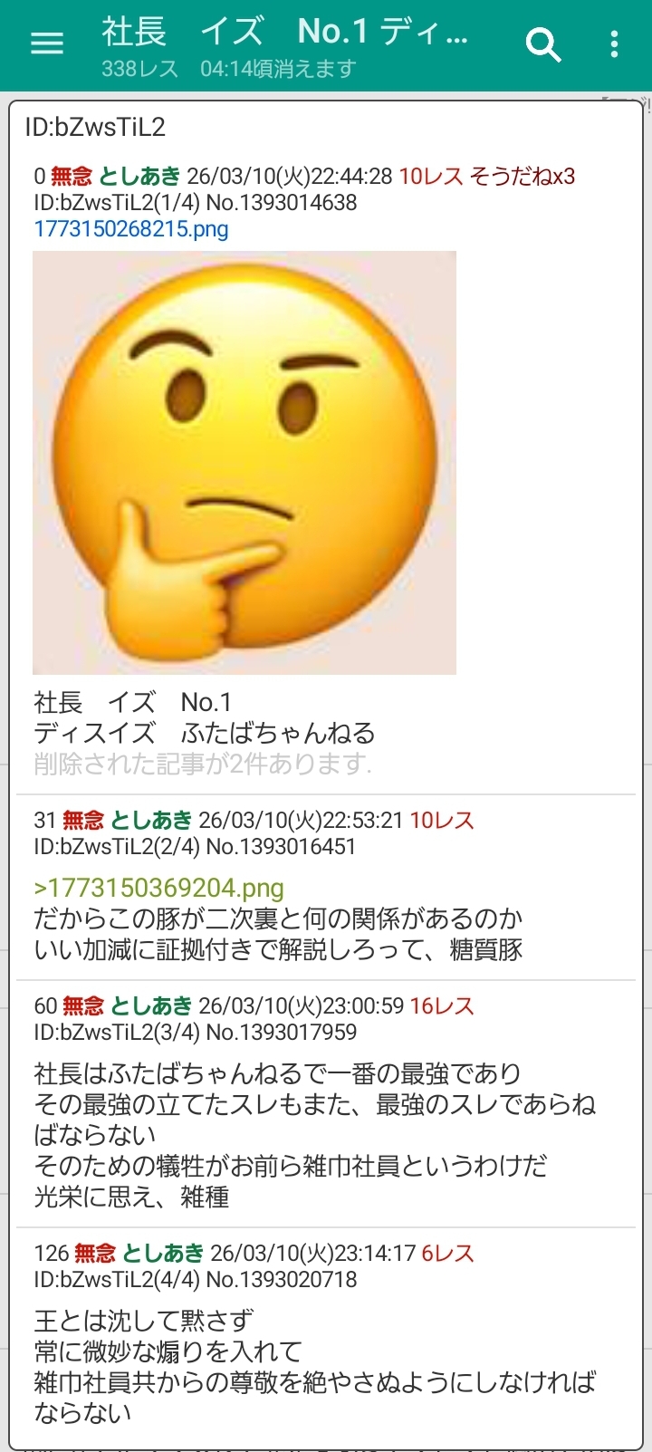 | … | 73無念Nameとしあき26/03/10(火)23:02:31No.1393018290そうだねx4>社長はふたばちゃんねるで【一番の最強】であり |