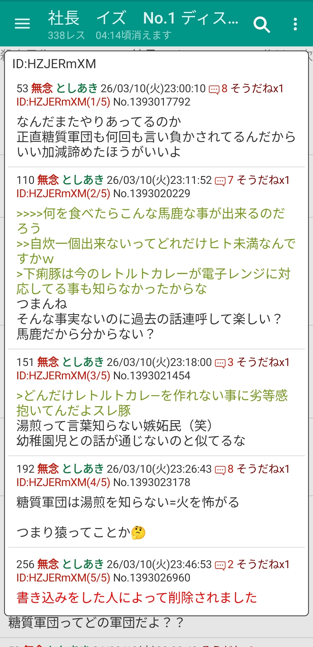 | … | 68無念Nameとしあき26/03/10(火)23:02:08No.1393018207+>正直糖質軍団も何回も言い負かされてるんだからいい加減諦めたほうがいいよ |