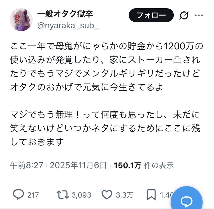 | … | 46無念Nameとしあき26/03/11(水)00:22:50No.1393033172そうだねx6知りもしない見た事もないもんによく粘着できるな |