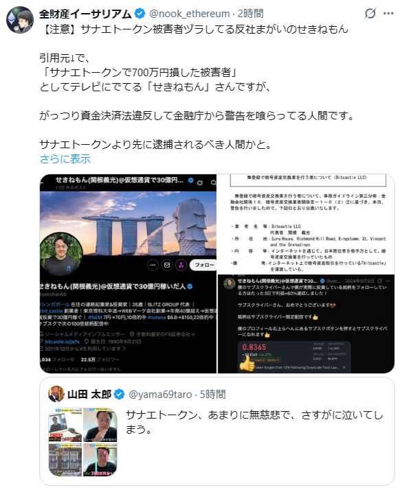 | … | 19無念Nameとしあき26/03/11(水)01:29:03No.1393041637そうだねx3>そもそもノダトークンもイシバトークンもあるのになぜサナエトークンだけニュースにしてんだ |