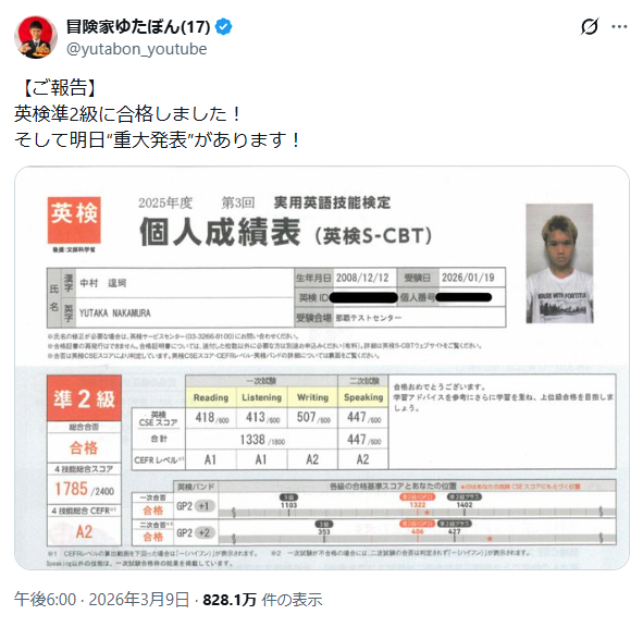 | … | 121無念Nameとしあき26/03/11(水)07:29:32No.1393057697+>俺は3級までしか取ってないから素直に凄いと思うし真っ当な頑張りをしてる今のゆたぼんをわざわざ腐す意味もない |