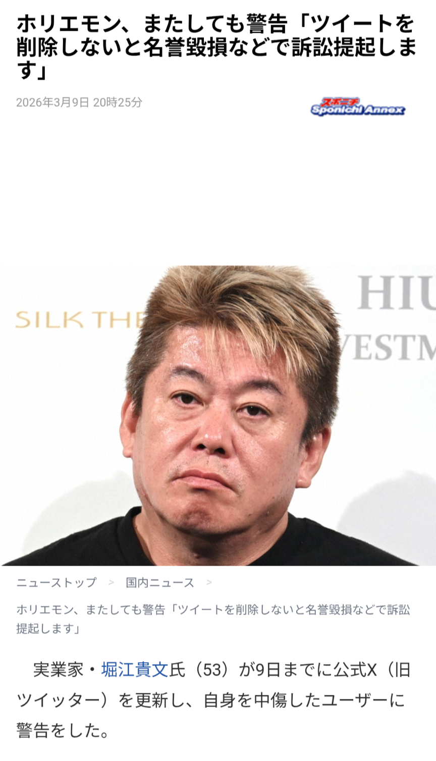 | … | 9無念Nameとしあき26/03/11(水)06:55:02No.1393055198+ホリエモン呼ばわりは気に入ってるんだろな… |