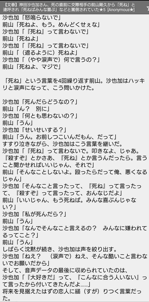 | … | 70無念Nameとしあき26/03/11(水)20:42:01No.1393193290+>いやいやログ見て確認してこいよ普通にメンヘラの沙也加が悪いスレ画も被害者だったって言われてるから |