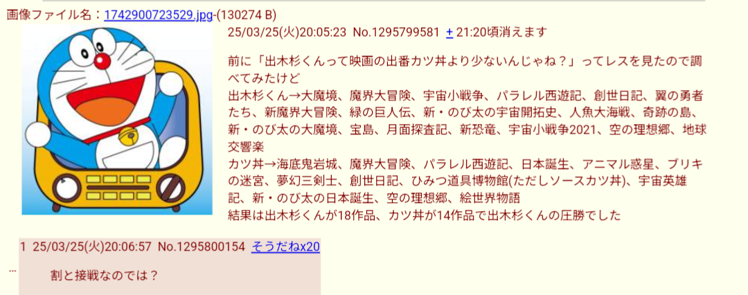 | … | 75無念Nameとしあき26/03/11(水)23:46:56No.1393242783+>最近やたら映画ドラえもんのスレ立つけど |