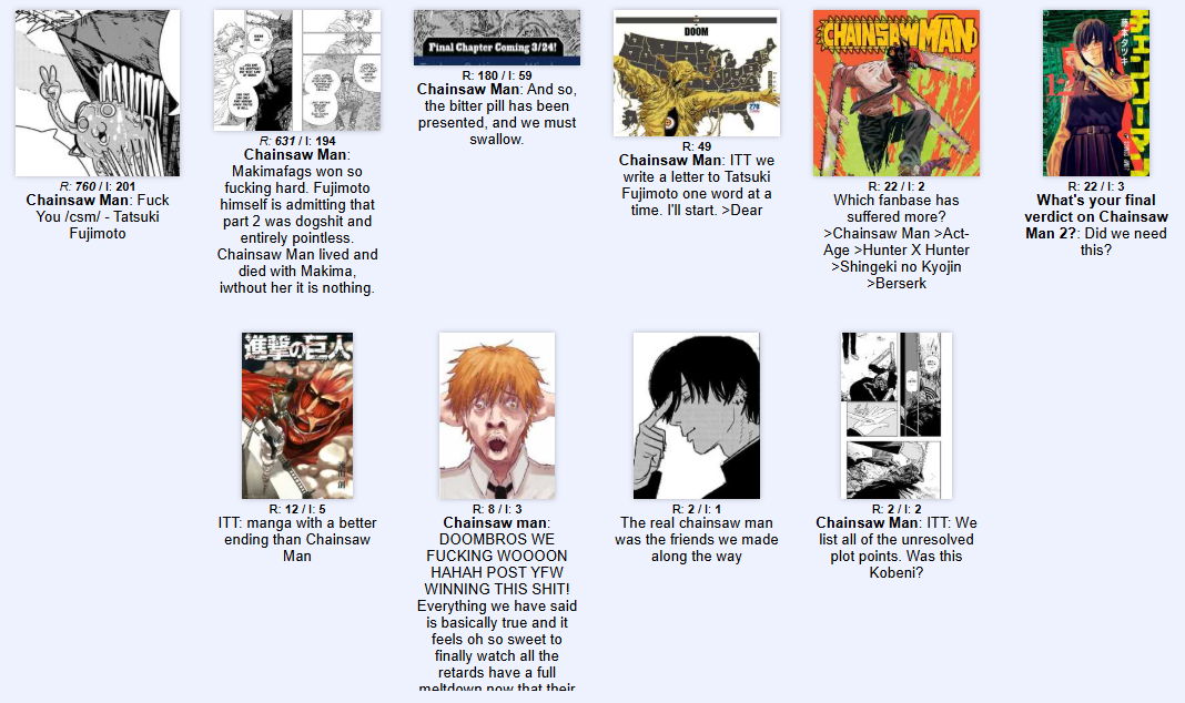 | … | 10無念Nameとしあき26/03/11(水)23:40:31No.1393241481+3部やらないと色々投げっぱなしの部分が多過ぎてわけわからんけど…たぶんタツキがもうやりたくなくてこのまま『チェンソーマン 完』で終わると思うよ |