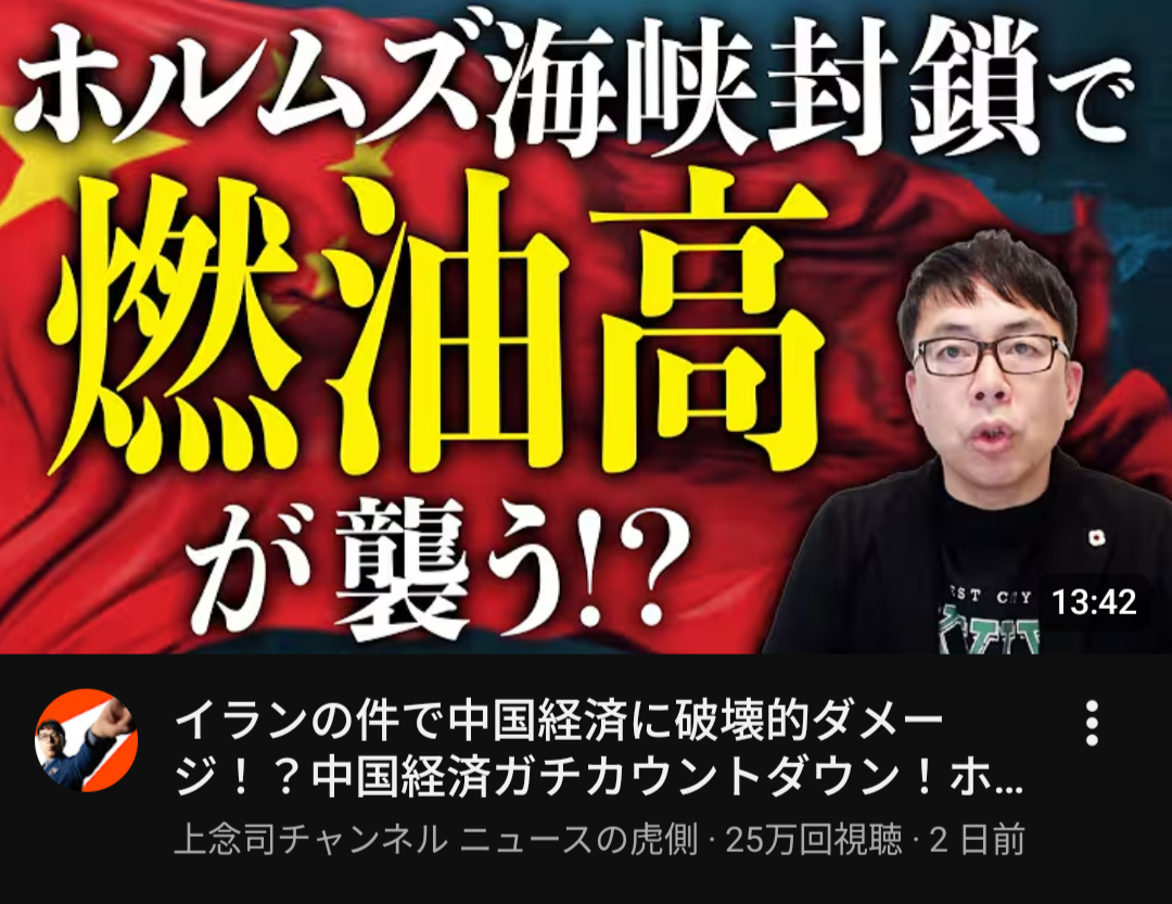 | … | 45無念Nameとしあき26/03/12(木)00:36:08No.1393252167そうだねx1早く日本は中国にゴメンナサイして石油分けてもらわなきゃね… |