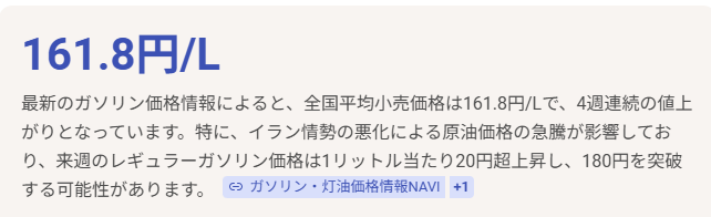 【高市悲報】ガソリン、191円・・・・・・・・・削除された記事が5件あります.見る