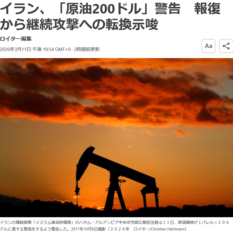 | … | 40無念Nameとしあき26/03/12(木)02:14:43No.1393262828そうだねx3>原油価格元に戻ってますやん |