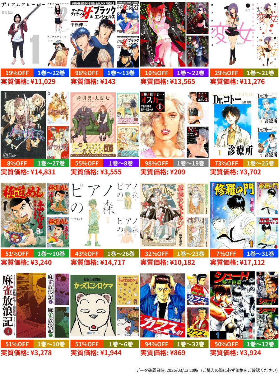 | … | 34無念Nameとしあき26/03/13(金)00:28:06No.1393458132そうだねx1 1773329286715.jpg-(52926 B) 1〜3巻が110円のものがある |