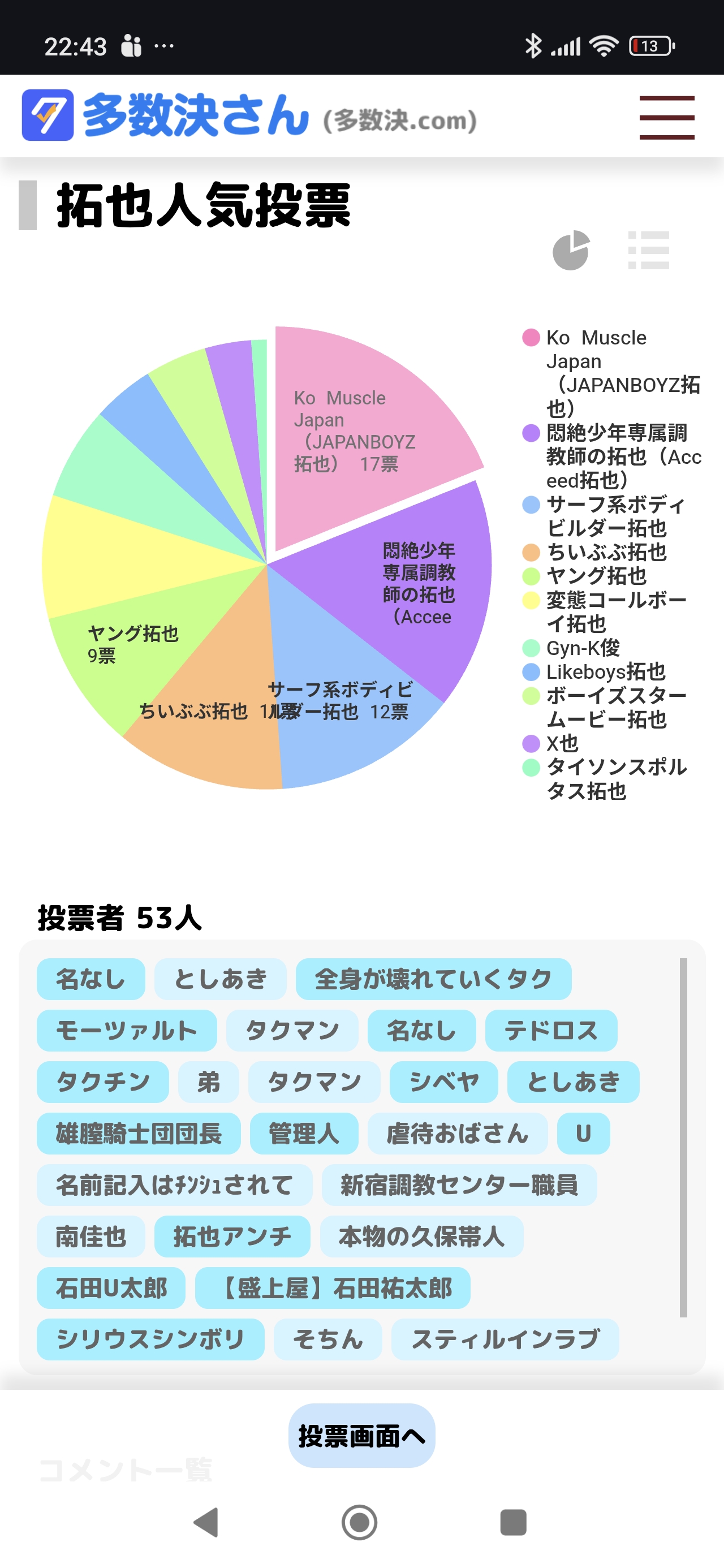 | … | 24無念Nameとしあき26/03/12(木)22:44:04No.1393437860+ 1773323044263.jpg-(773635 B) 拓也人気投票でもブービーのX也さん哀れ。 |