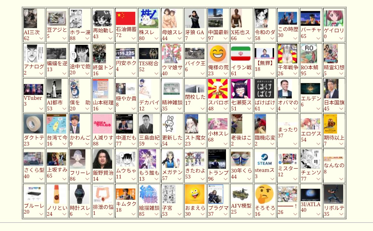 | … | 873無念Nameとしあき26/03/13(金)18:00:49No.1393571424+雑談も出来るし叩きも出来るコンテンツ他にあるかな |