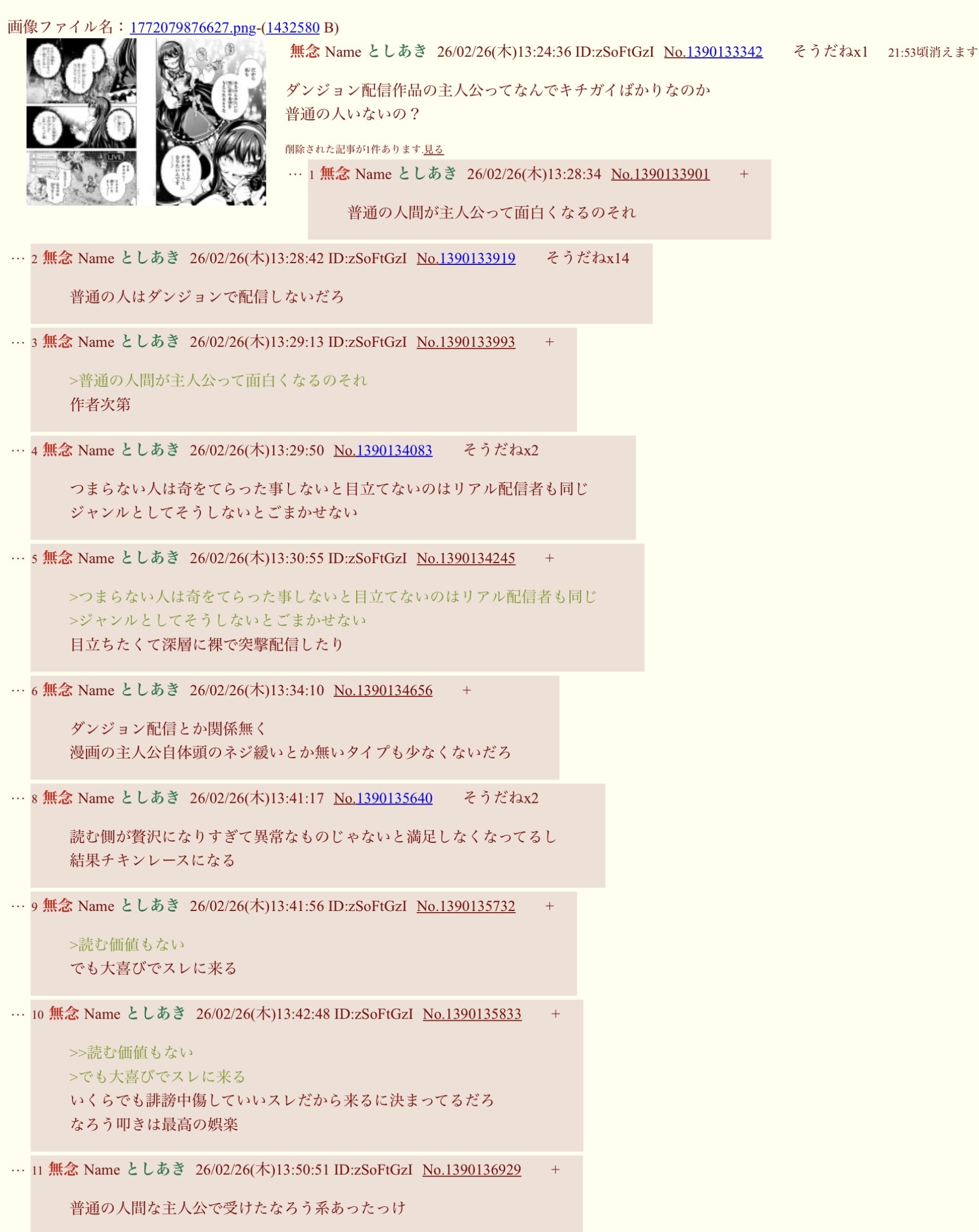 | … | 15無念Nameとしあき26/03/13(金)13:48:14No.1393531572そうだねx6>時間の無駄すぎてふたばやめたわ |