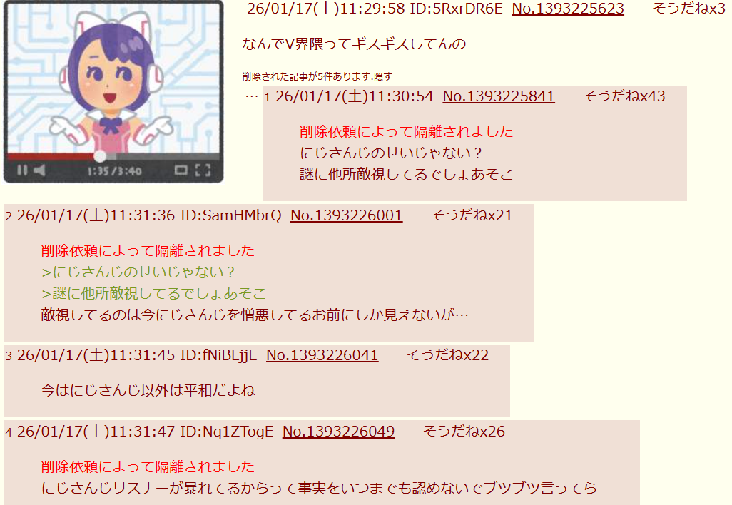 | … | 875無念Nameとしあき26/03/13(金)18:03:04No.1393571836そうだねx1虹裏の中でもトップの勢いで盛り上がってるスレを隔離するなんて… |