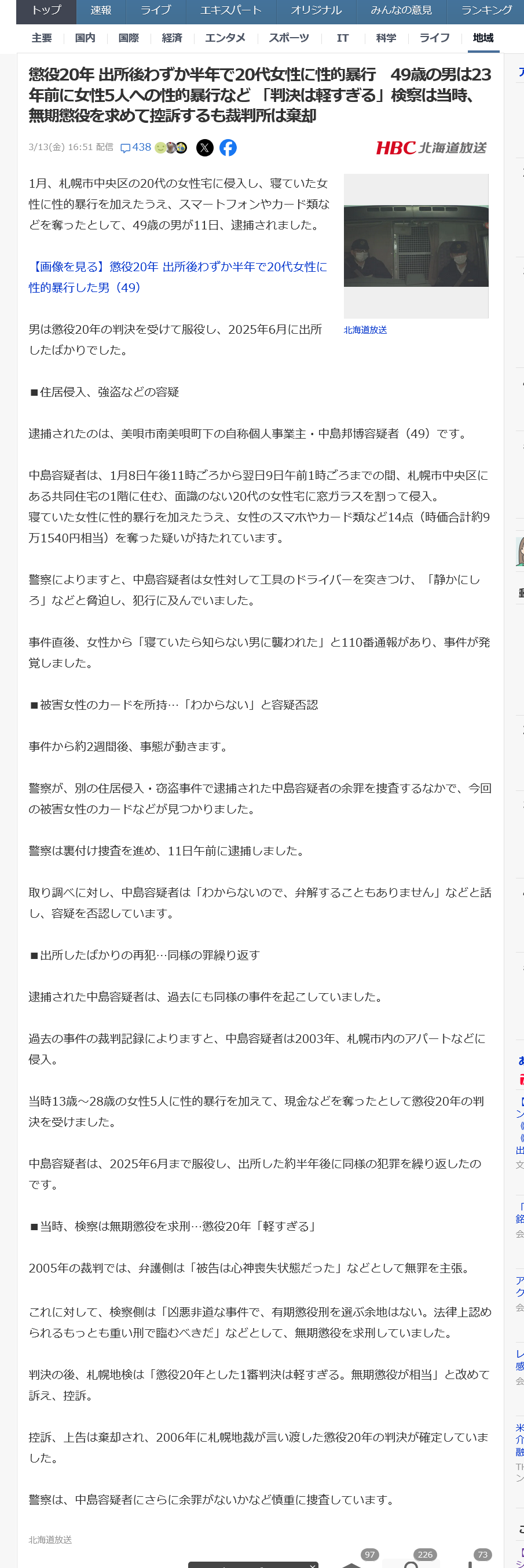 | … | 97無念Nameとしあき26/03/14(土)04:28:03No.1393678954+>強姦で20年は十分重いのでは? |