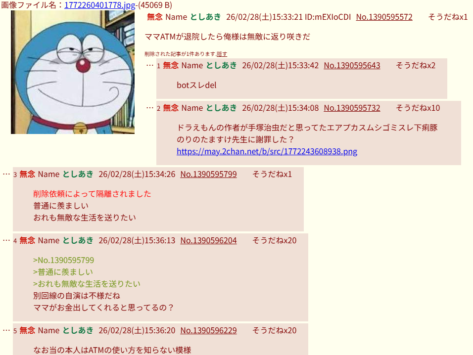 | … | 48無念Nameとしあき26/03/14(土)19:40:08No.1393824992+>ドラえもんの画像使ってるけど |