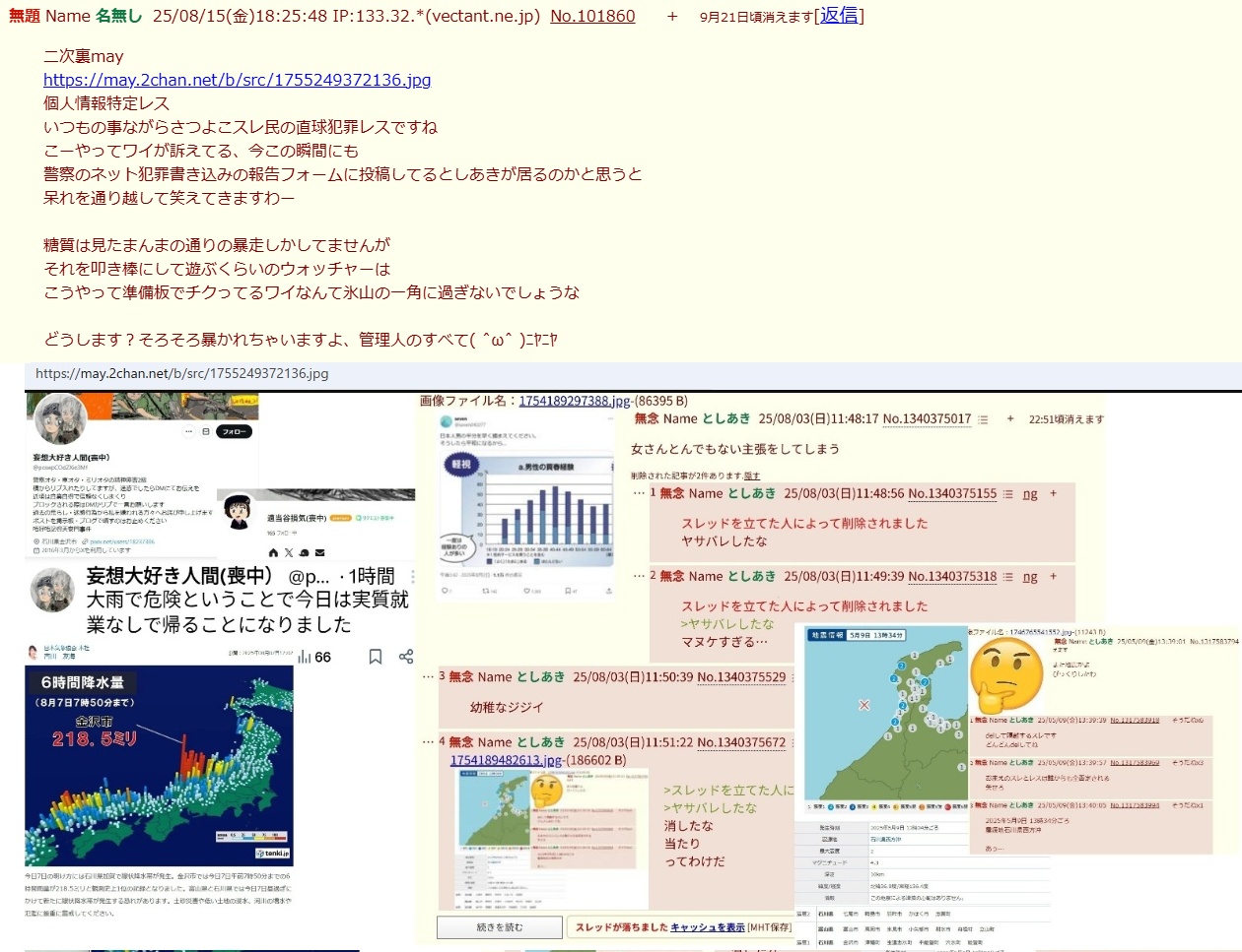 | … | 238無念Nameとしあき26/03/14(土)23:27:31No.1393883596そうだねx1>スレを消したら荒した記録も消えると思ってるやつだぞ? |