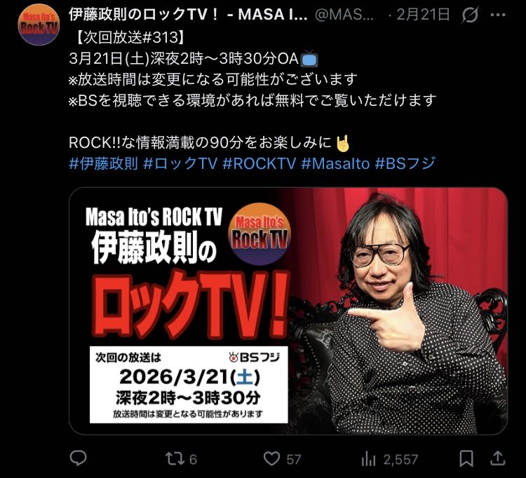 | … | 69無念Nameとしあき26/03/15(日)18:38:37No.1394085897+マサ伊藤はパワーロックトゥデイ聴いてたな |