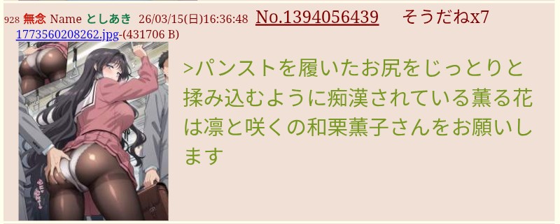 | … | 901無念Nameとしあき26/03/15(日)19:05:32No.1394092841そうだねx4 1773569132413.jpg-(216264 B) >このスレで小早川凛子リクエストしても答えてもらえない理由が生成してやっと分かったよ |