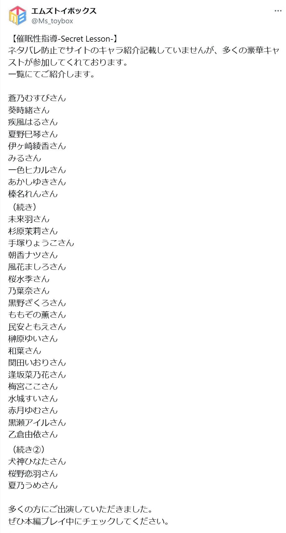 | … | 77無念Nameとしあき26/03/15(日)18:45:51No.1394087594そうだねx2昔の賢プロとかプロフィットとかエロゲで声優を育成する事務所は信頼出来る |