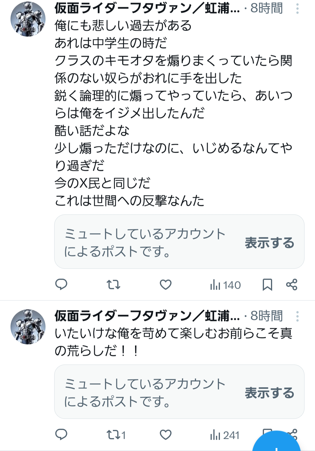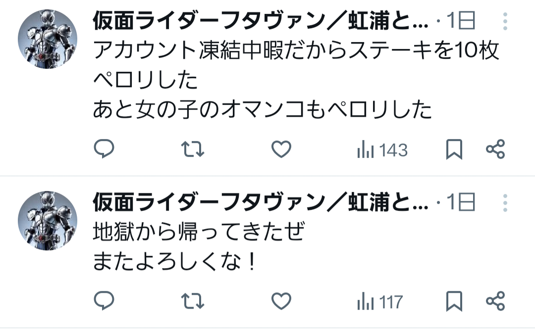 | … | 73無念Nameとしあき26/03/16(月)00:36:11No.1394179336そうだねx5>ウルトラマンXとガンダムXは仮面ライダーXをパクってる駄作 |