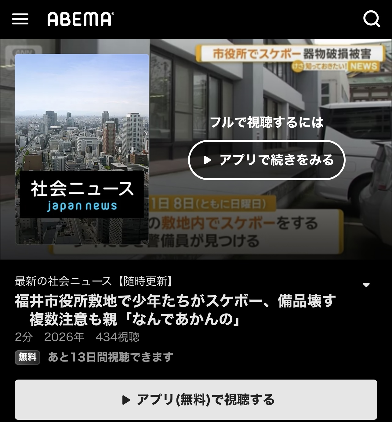【悲報】福井市役所敷地で在日の少年たちがスケボーし備品を壊す削除された記事が1件あります.見る
