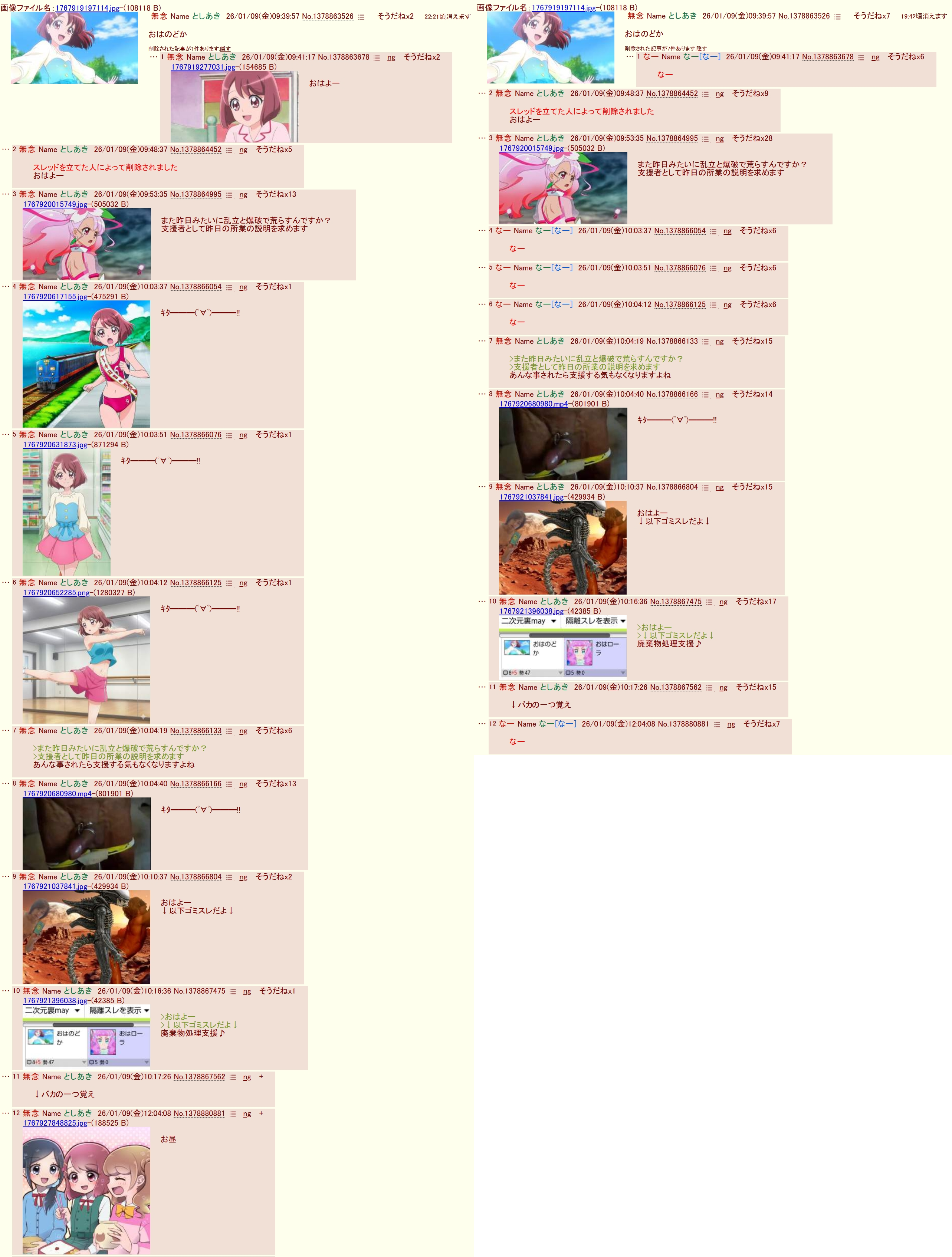 | … | 13無念Nameとしあき26/03/16(月)10:46:36 ID:Y1f5wSgYNo.1394221981そうだねx7>昨日のスレでおはのどかスレは糖質にあらされてる被害者アピもしてて草生えた |