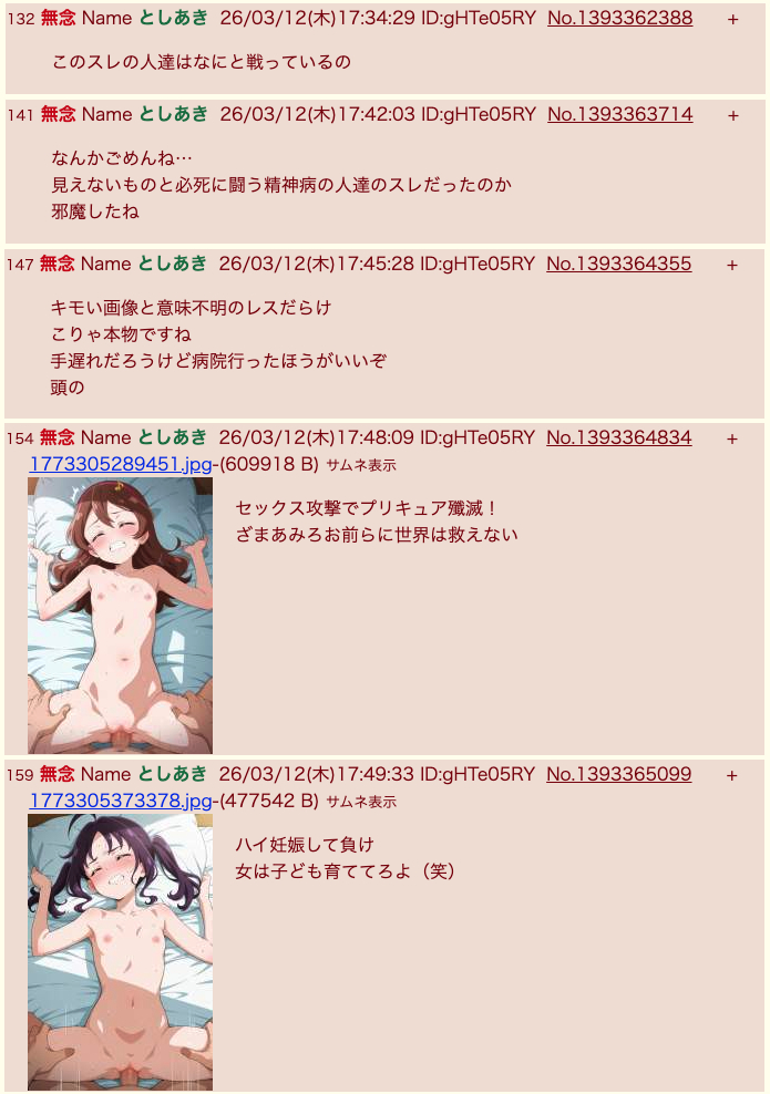 | … | 34無念Nameとしあき26/03/16(月)11:07:05 ID:GXWQO3TMNo.1394224390+>>健全メッセージ |
