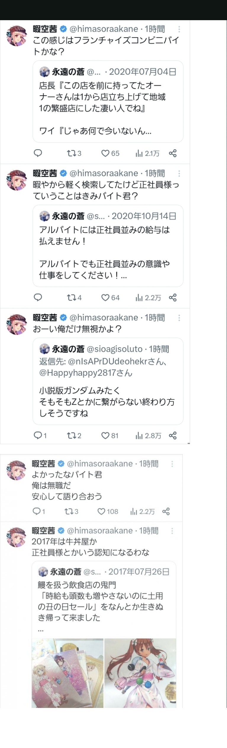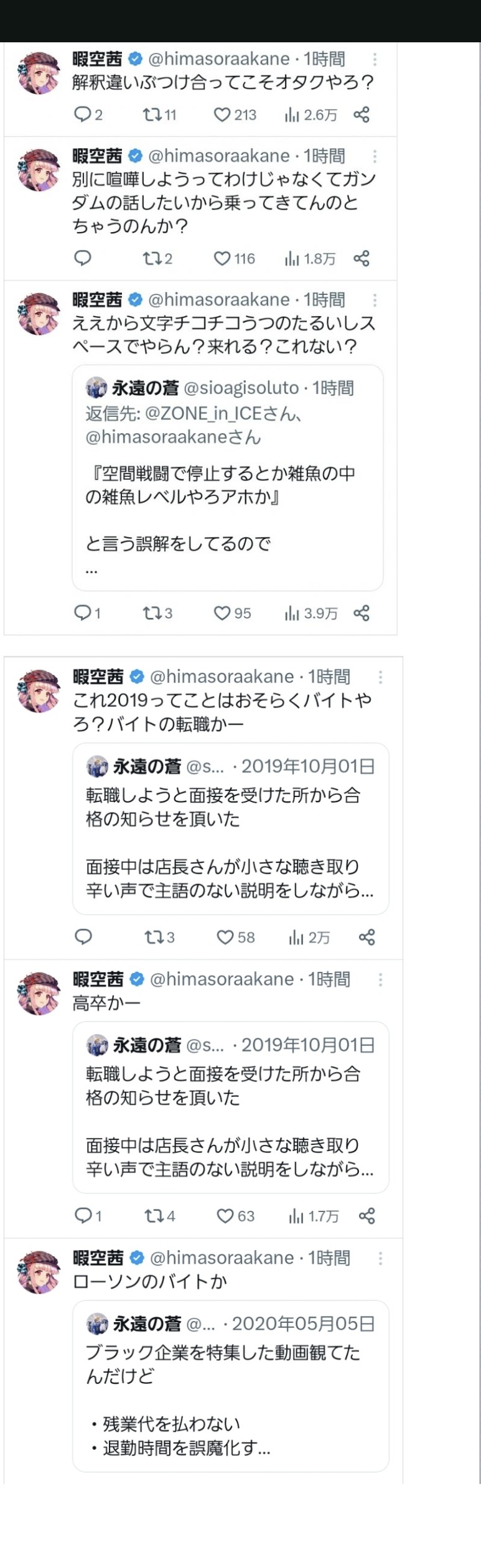 | … | 40無念Nameとしあき26/03/16(月)10:11:53 ID:V8890vq.No.1394217466そうだねx3>>>ガンダム未視聴の暇空が妄想でガノタに喧嘩を売って瞬殺されたのが始まり |