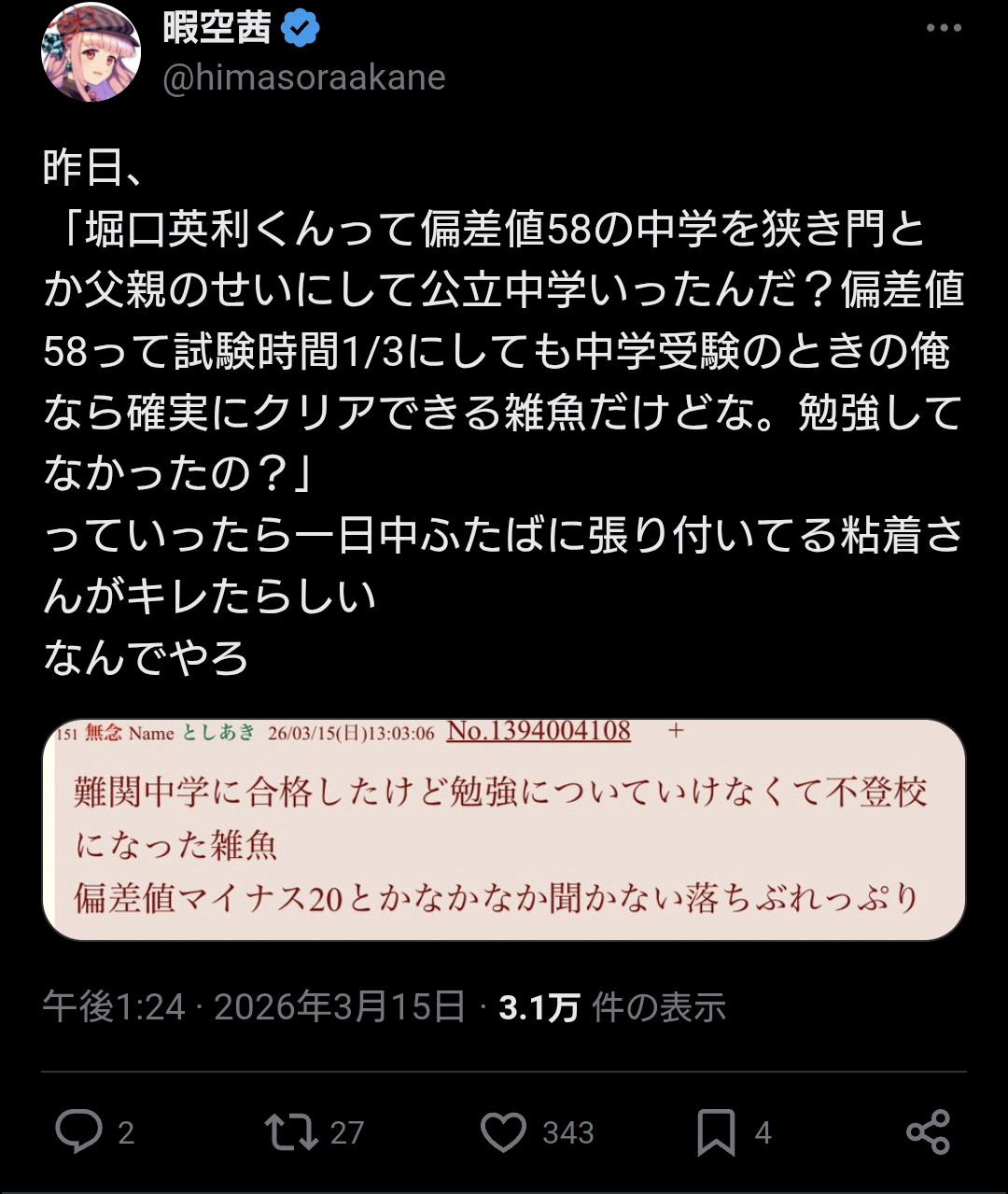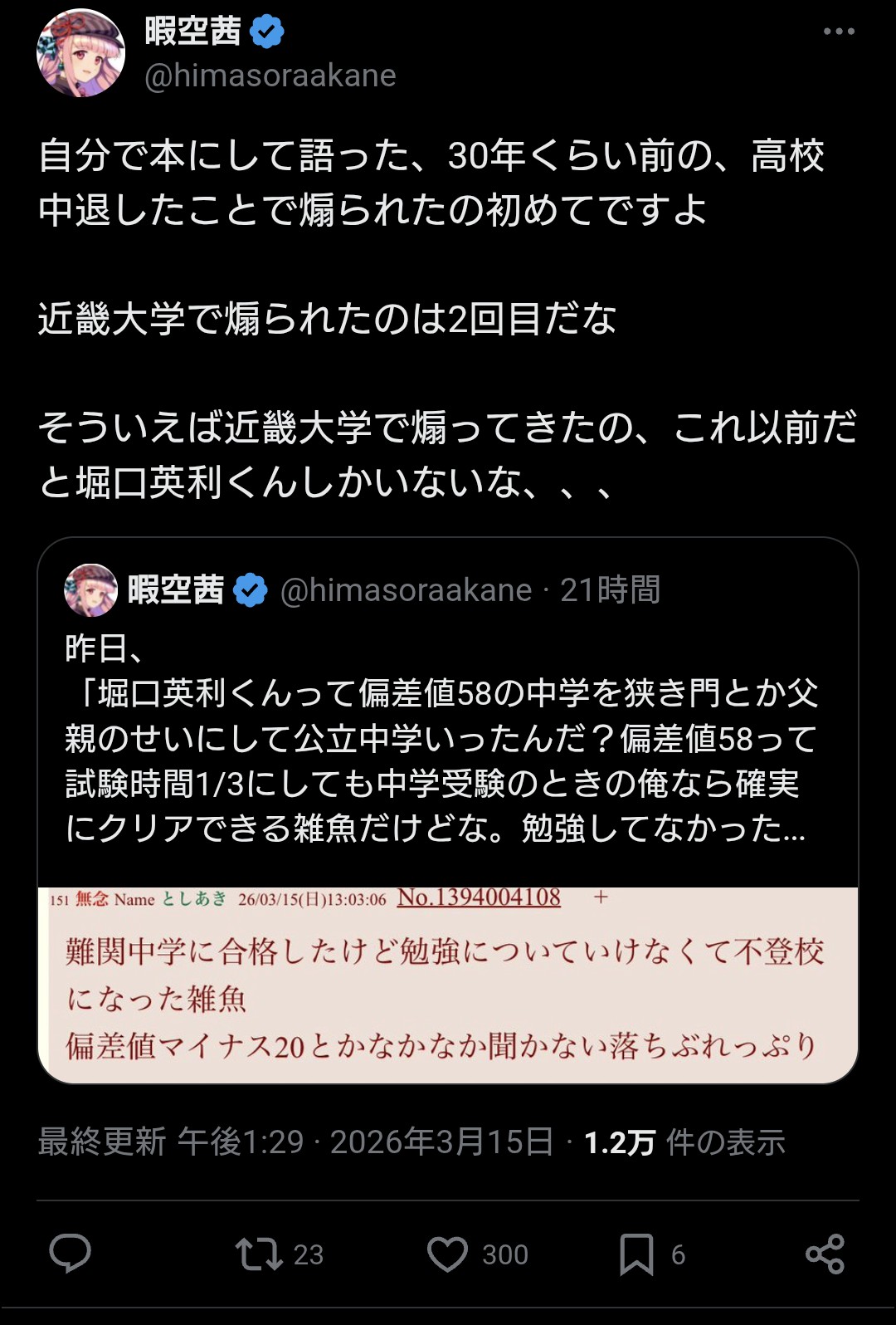 | … | 89無念Nameとしあき26/03/16(月)11:05:41 ID:V8890vq.No.1394224226+ 1773626741421.jpg-(203246 B) 暇空って自分が学歴詐称してたから |