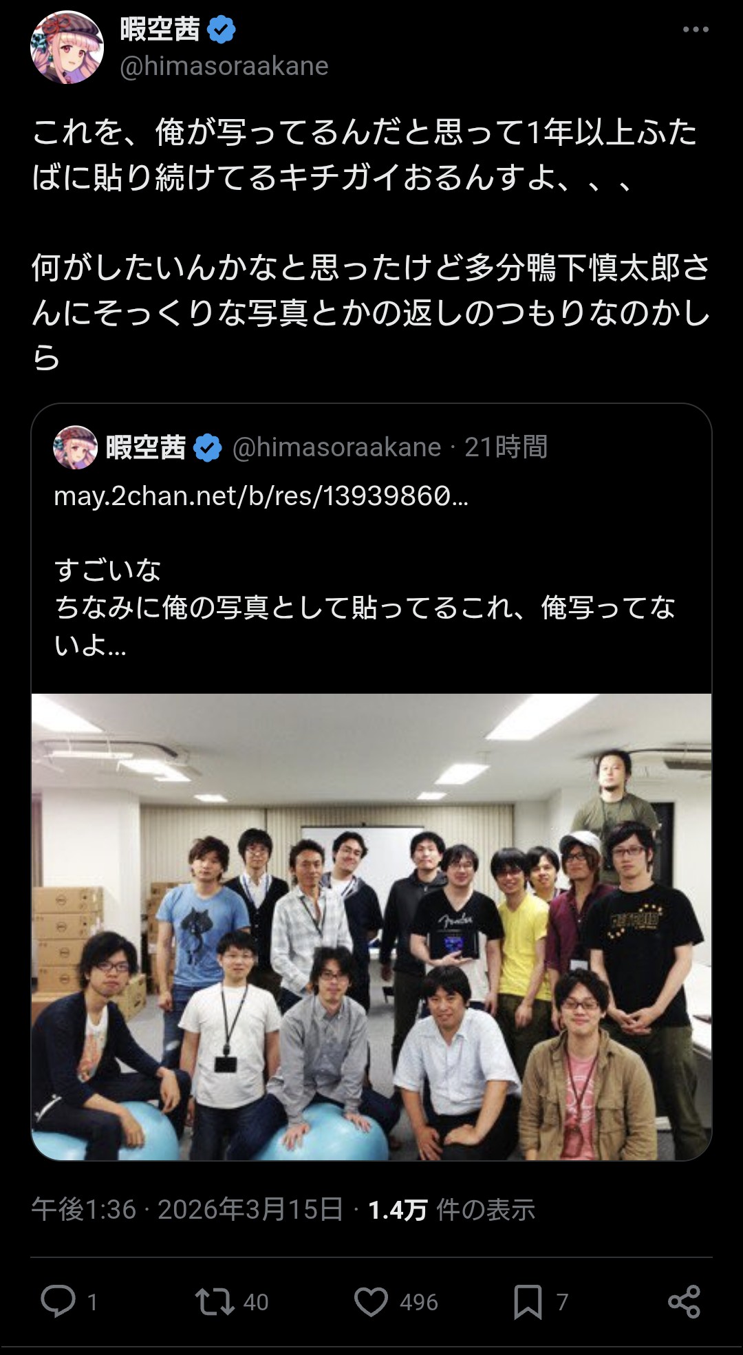 | … | 127無念Nameとしあき26/03/16(月)11:16:15 ID:V8890vq.No.1394225497そうだねx2 1773627375426.jpg-(225900 B) 毎日ふたばを監視してる暇空が |