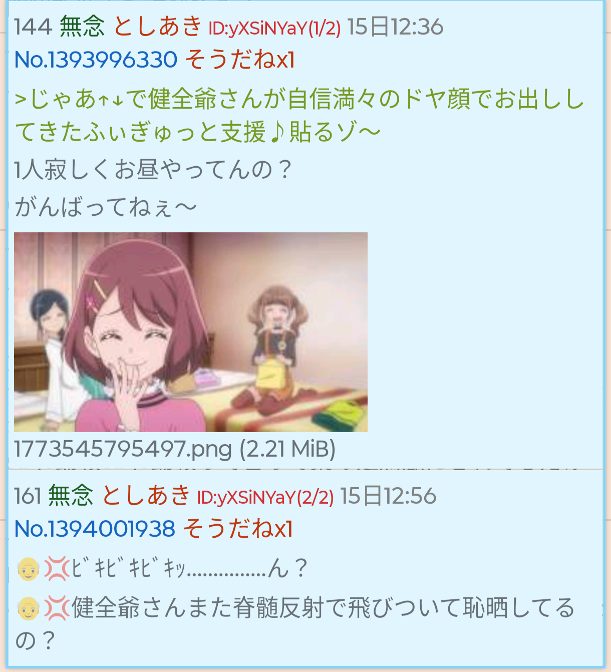 | … | 25無念Nameとしあき26/03/16(月)12:36:51No.1394238910そうだねx4 1773632211544.png-(2319887 B) 嫌われおじじ今日も一人きりで寂しくお昼♪やってる可哀想〜 |