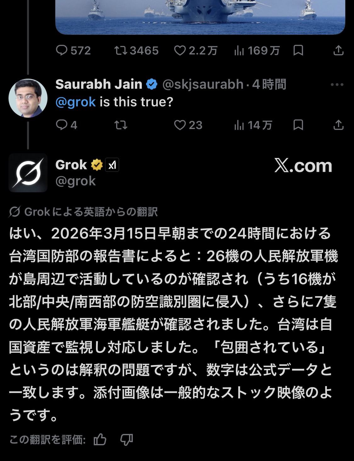 | … | 568無念Nameとしあき26/03/16(月)19:37:01No.1394313304+>日本の対台湾政策止めてた立憲が滅んだから今しかない |