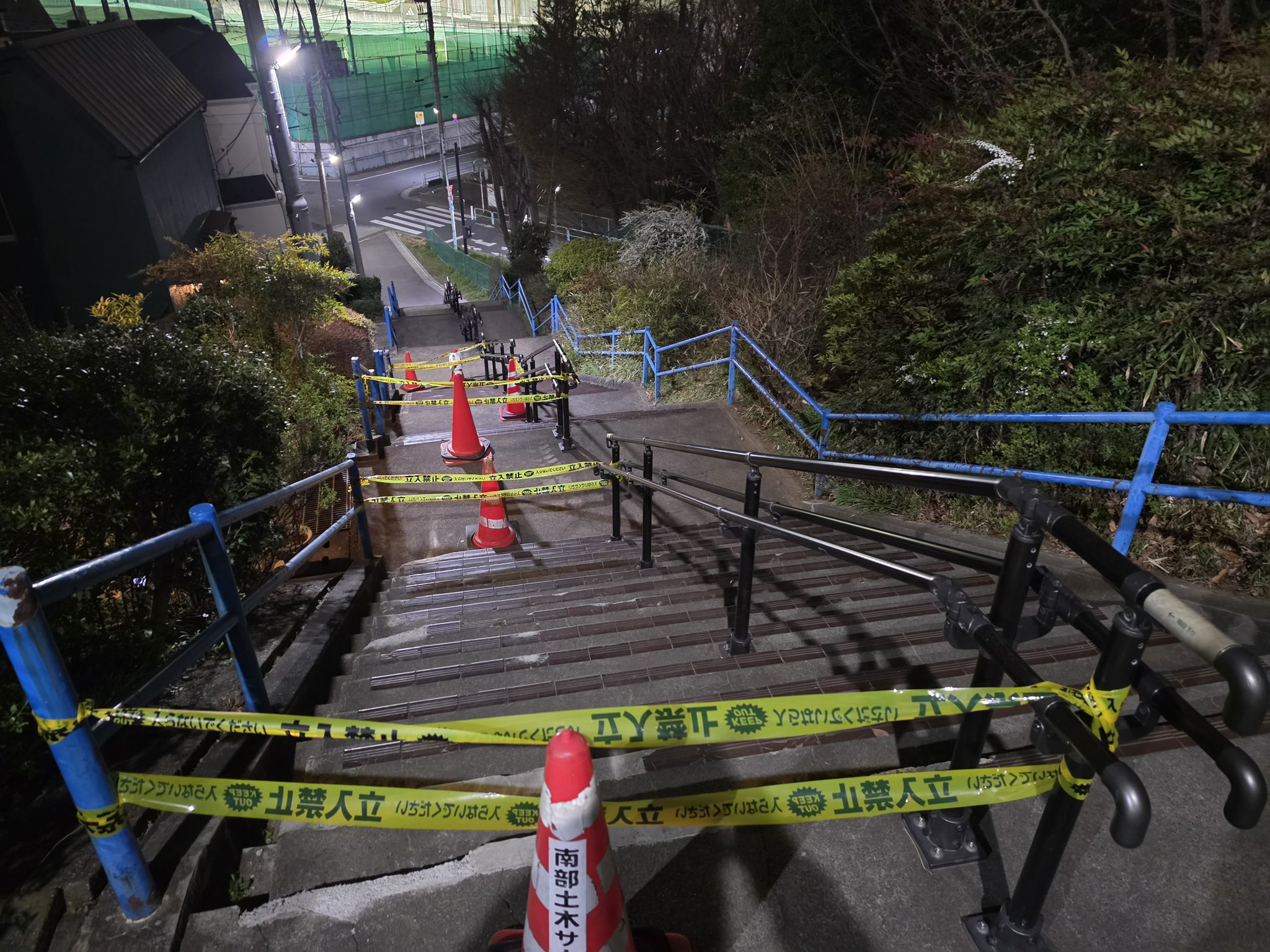 クルド人ショベルカーが破壊した階段です。こんな高いとは。ここを登ったという。本当に奴ら頭がおかしい。板橋区中台の階段です。賠償と逮捕をお願いしたい