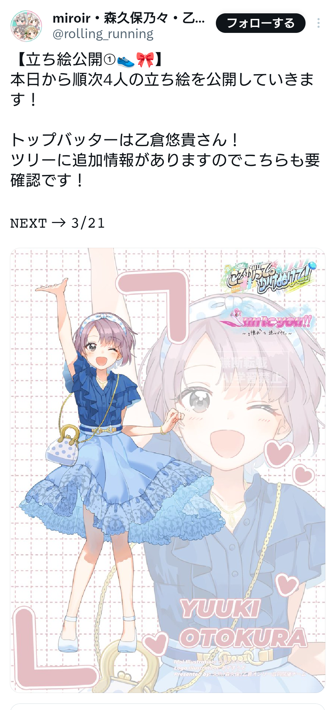 | … | 41無念Nameとしあき26/03/18(水)12:20:28 ID:FLu1iFgcNo.1394658115+ 1773804028705.png-(1659806 B) 集合イラストの各メンバー単体も順次公開されるみたいにゃあ |