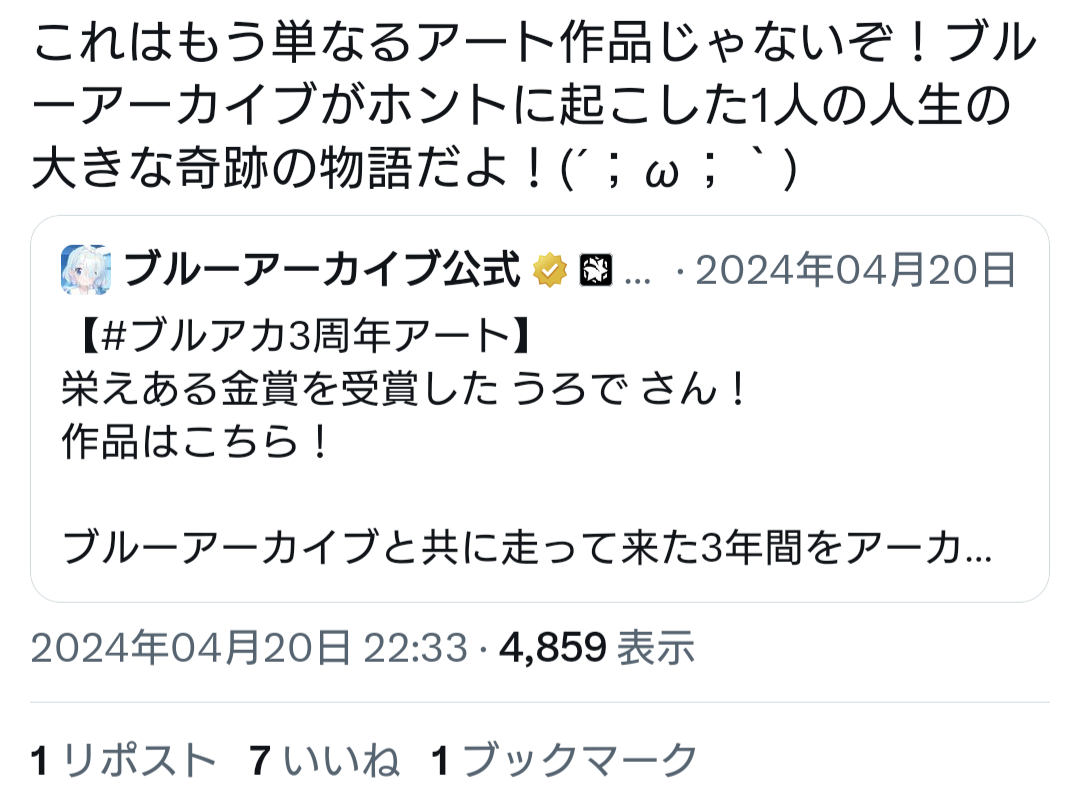 | … | 89無念Nameとしあき26/03/18(水)13:04:52No.1394668127+金賞はヨスタの暴走かと思ったら本国も数ヶ月後に「ブルアカのおかげで先生になりました」って内容の実ブル出してきたから同じセンスだったのほんとすき |