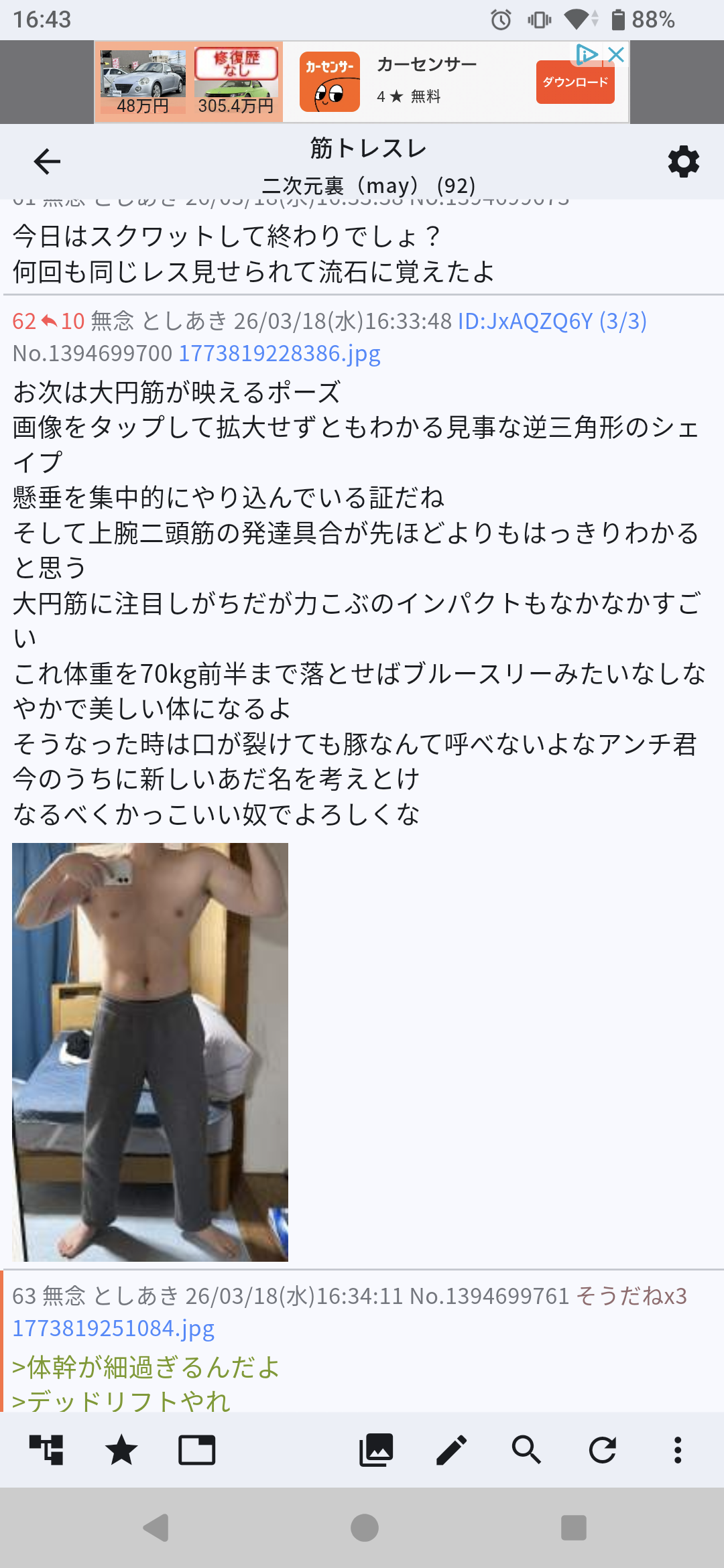 | … | 63無念Nameとしあき26/03/18(水)16:34:11No.1394699761そうだねx5 1773819251084.jpg-(55013 B) >体幹が細過ぎるんだよ |