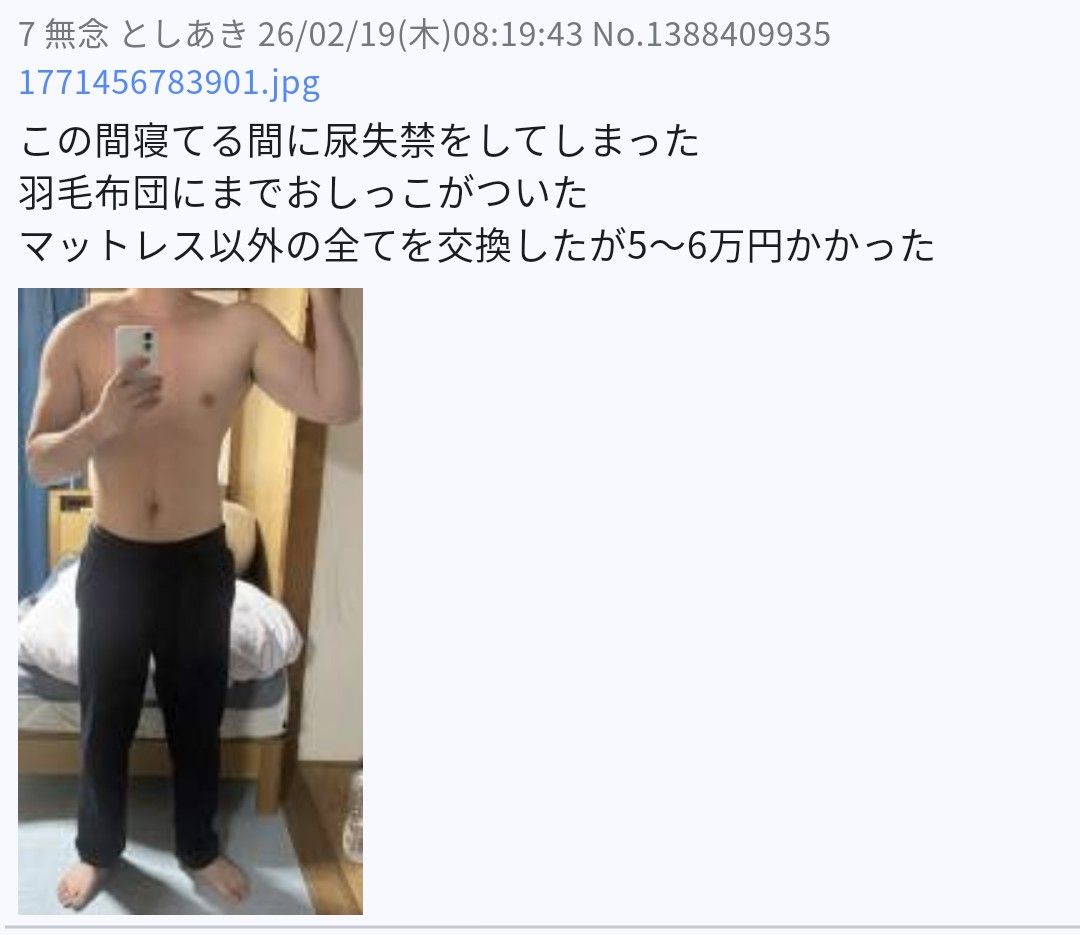 | … | 44無念Nameとしあき26/03/18(水)16:22:54No.1394697961そうだねx4他人に見せるなら布団ぐらい整えろよ怠惰豚 |
