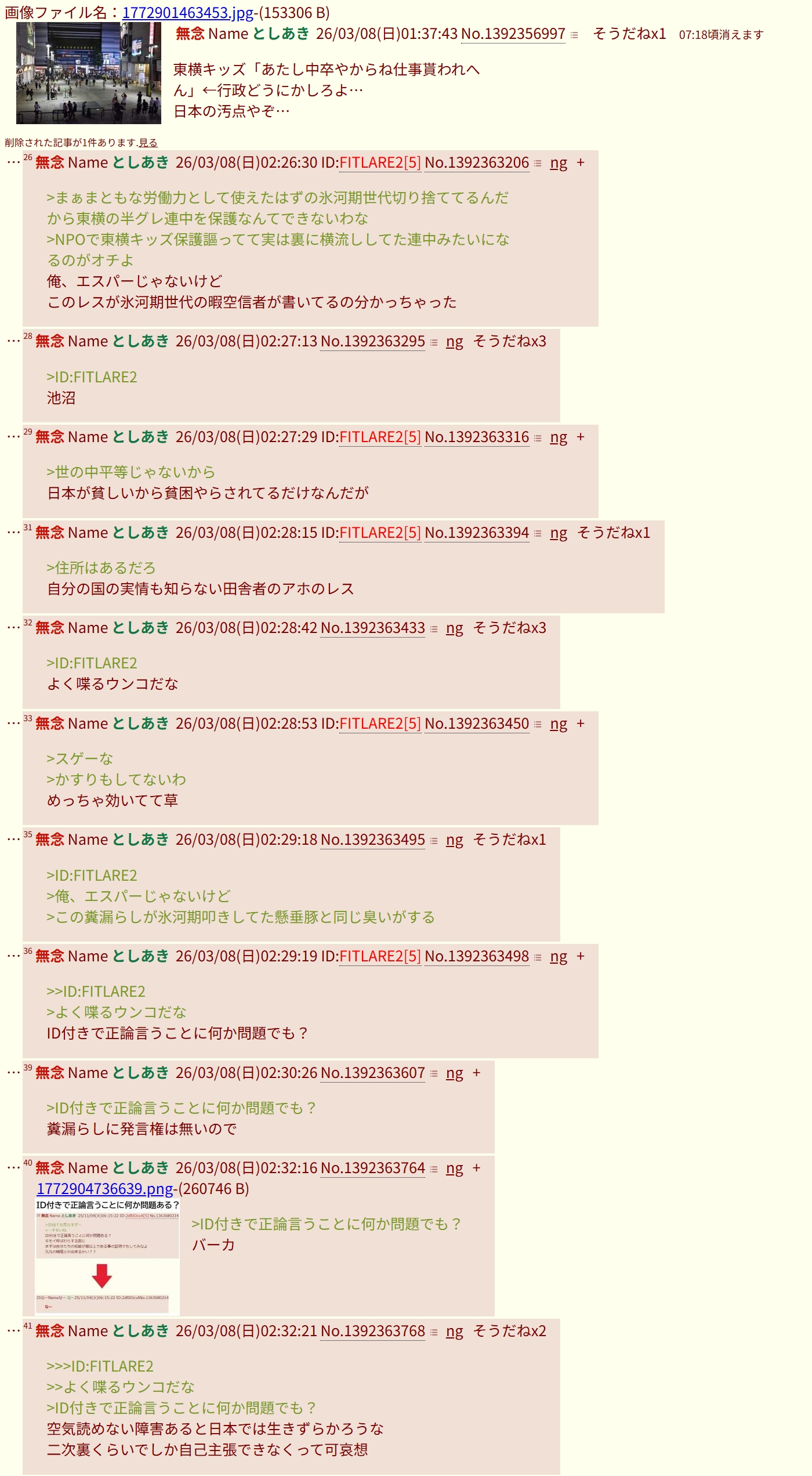 | … | 45無念Nameとしあき26/03/18(水)16:23:27No.1394698064+>キチガイの長文なんか読むだけ無駄だから書かなくていいよ |