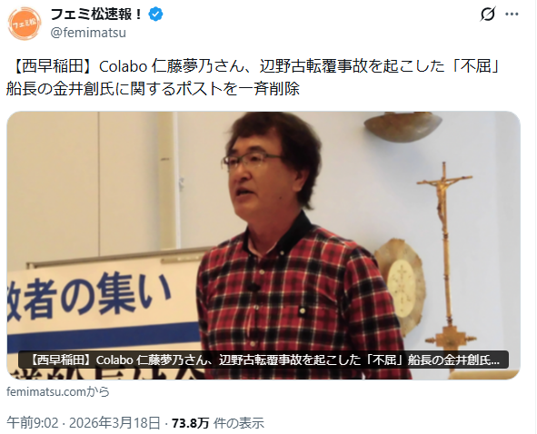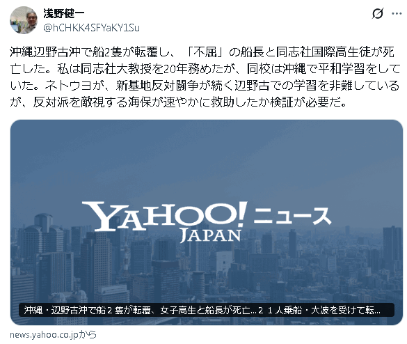 | … | 40無念Nameとしあき26/03/18(水)20:01:48No.1394743425そうだねx1生徒本人や保護者に研修旅行で抗議船に乗船しますって前もって説明してたの? |