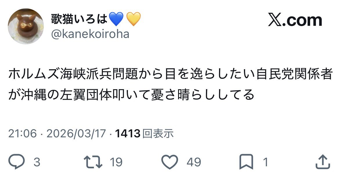 | … | 32無念Nameとしあき26/03/18(水)19:53:29No.1394741078そうだねx12オール沖縄とやらがしゃしゃり出てきたので |