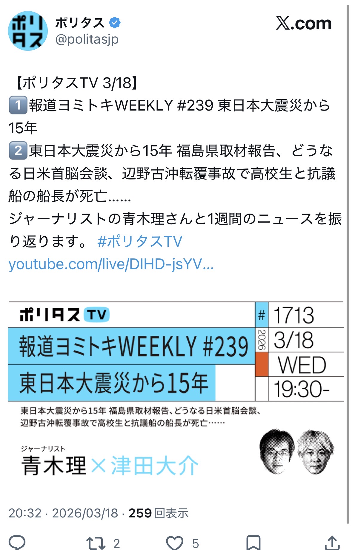 | … | 903無念Nameとしあき26/03/18(水)21:22:37No.1394764917+>なんかマスコミ的には不慮の事故っぽくしたいみたいだけど人災ですわ… |