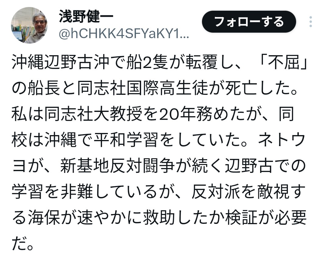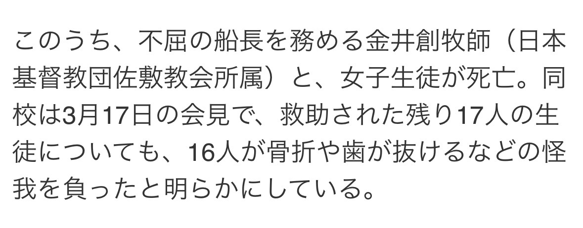 | … | 43無念Nameとしあき26/03/18(水)20:03:16No.1394743835+>生徒本人や保護者に研修旅行で抗議船に乗船しますって前もって説明してたの? |